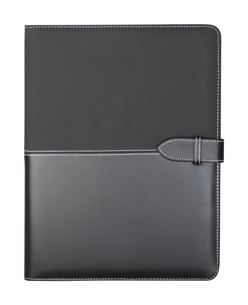 A4 Dokumentenmappe mit Notizblock (20 Seiten, liniert), Stiftschlaufe und Visitenkartenfach. Material: Kunstleder.