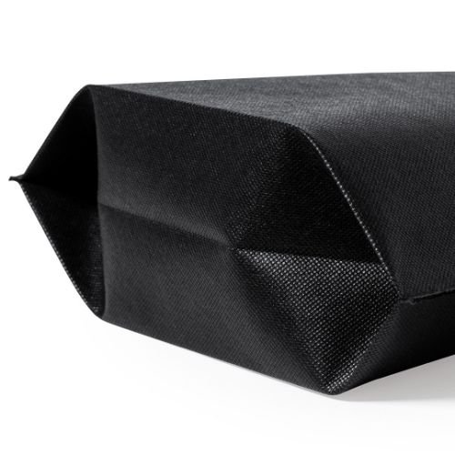 Linie “Natur” Tasche, hergestellt aus 70g/m2 recyceltem Vliesstoff. Hergestellt in Europa, mit verschweißter Oberfläche, Bodenfalte, verstärktem, gestanztem Griff und Öko/Made-in-Emblem auf der Tasche.