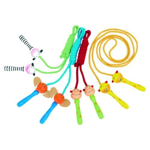 Bunte Springseile mit verschiedenen Tiermotiven am Holzgriff