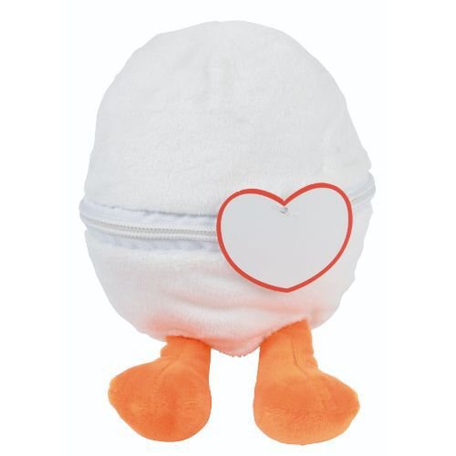 Plüschente LENI: mit weichem Fell, im Plüsch-Ei mit Reißverschluss, mit Herz zum Bedrucken.