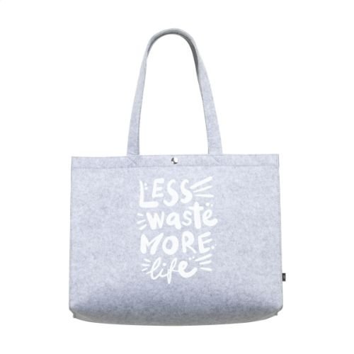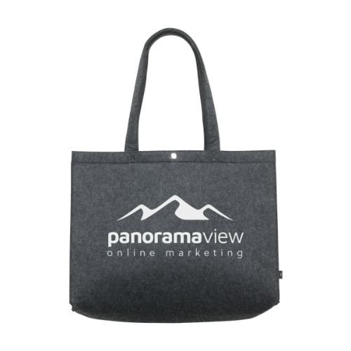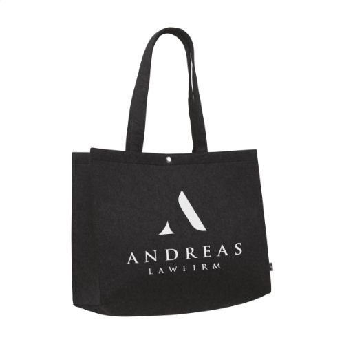 Coole, geräumige Einkaufstasche aus RPET-Filz (hergestellt aus recycelten PET-Flaschen). Diese Tasche bietet äußerst viel Platz und ist mit langen Griffen und einem Druckknopf ausgestattet. Das nachhaltige Material ist von hoher Qualität. Eine ökologisch verantwortungsbewusste Wahl. Fassungsvermögen ca. 20 Liter.