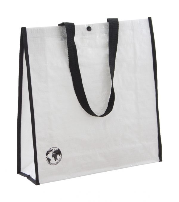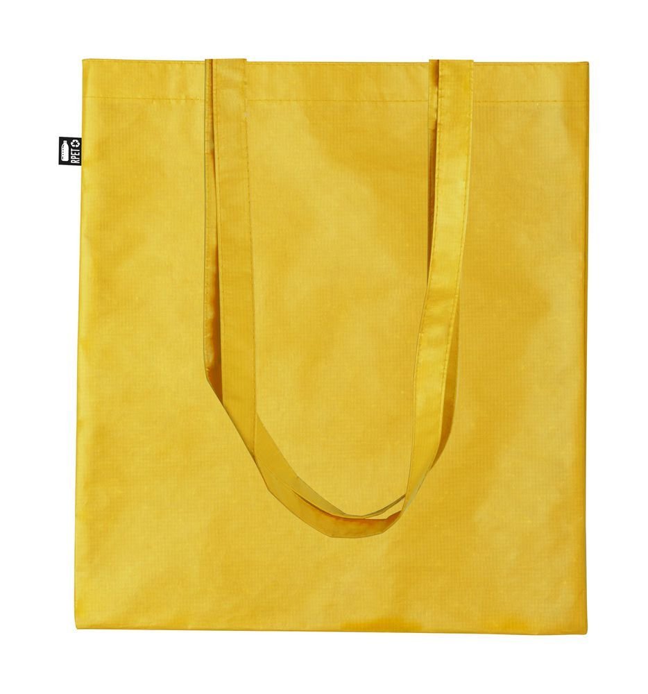 Laminierte Einkaufstasche aus recycletem PET (105g/m²) mit langen Henkeln.