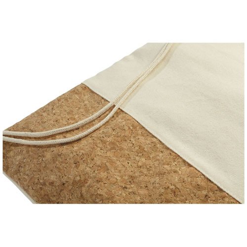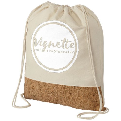 Sportbeutel mit offenem Hauptfach und Kordelzug Verschluss. 100% Kork Unterteil auf der Vorderseite. Baumwolle, 175 g/m2, Cork.