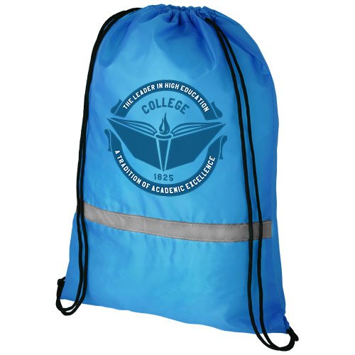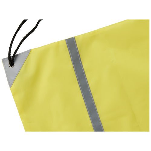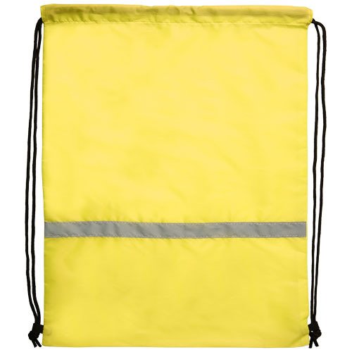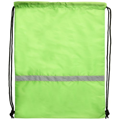 Sportbeutel, zertifiziert nach EN 13356. Großes Hauptfach mit Kordelzugverschluss. Ausgestattet mit einem reflektierenden Frontband und verstärkten Ecken. Beständigkeit bis zu 5 kg. 190T Polyester.