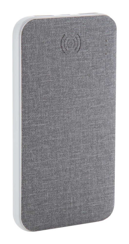 Powerbank mit eingebautem Wireless-Charger und 2 USB Ports. Marerial: Kunststoff mit Oberfläche aus strukturiertem Kunstleder. Akkukapazität: 3000 mAh. Inkl. Mikro-USB-Ladekabel.