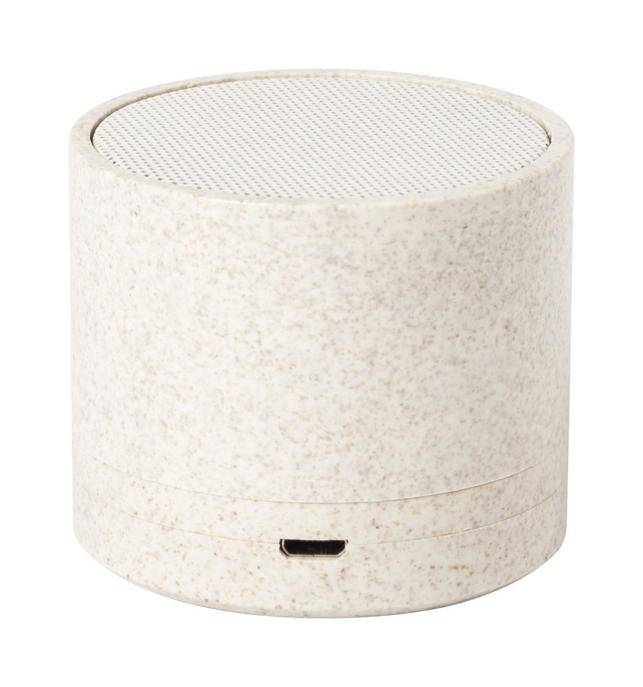 Bluetooth-Lautsprecher mit Gehäuse aus ökologischem Weizenstroh-Kunststoff und eingebautem Akku. Inkl. USB-Ladekabel.