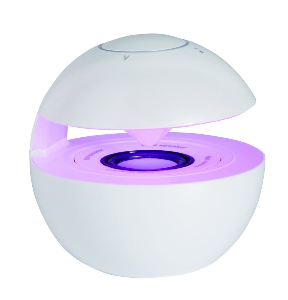 Lautsprecher WONDER BALL MINI: farbwechselndes Licht während der Wiedergabe, Musikleistung: 3 Watt, Bluetooth-Version 4.0, zur Koppelung mit Bluetooth-fähigen Geräten, Reichweite: ca. 10 m, auch andere externe Geräte über Line-In-Anschluss 3,5 mm Klinke (Kabellänge: ca. 53 cm) anschließbar, Slot für Micro-SD-Karten, mit Freisprechfunktion, Frequenzbereich: 20Hz-20KHz, aufladbarer Akku, Kapazität: 400 mAh, Laufzeit: ca. 4 h, USB-Ladekabel mit Micro-USB-Stecker (Länge: ca. 53 cm), Aufladezeit: ca. 4 h, Touch-Bedientasten oben, An- und Ausschalter, Anti-Rutsch-Beschichtung am Boden.