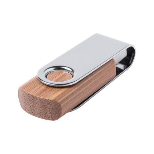 USB-Stick aus Bambus mit Metall-Clip. Speicherkapazität: 1GB – 64GB. Einzeln in Geschenkbox aus recycleter Pappe.