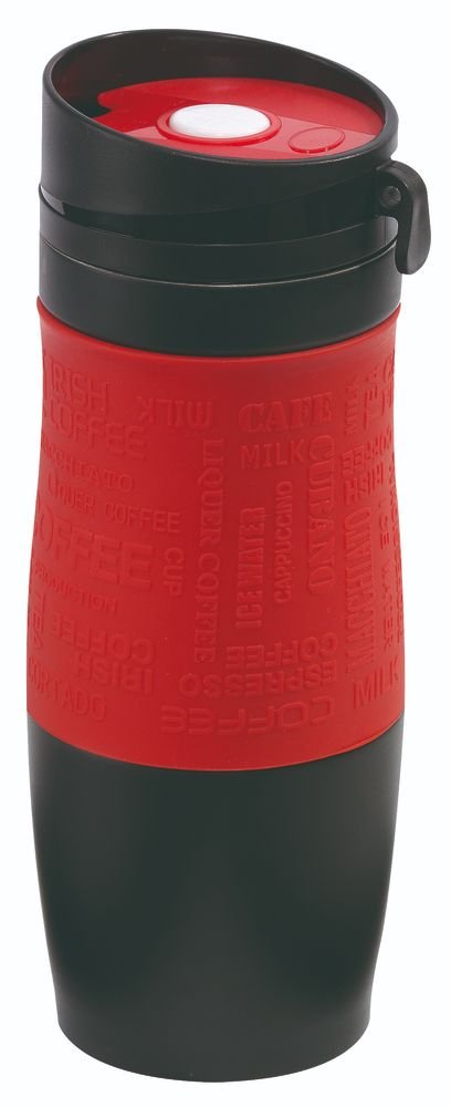 Isolierbecher GOLDEN DREAM, doppelwandig: innen und außen aus Edelstahl, Kunststoff-Deckel mit sicherem Schraubverschluss, Push-Button OPEN/CLOSE und integrierter Trinköffnung – außen Haken mit dem sich der Deckel an den Becher hängen lässt, farbig-gummierte Silikon-Manschette für beste Griffigkeit, Füllmenge ca. 380 ml, in Geschenkbox.