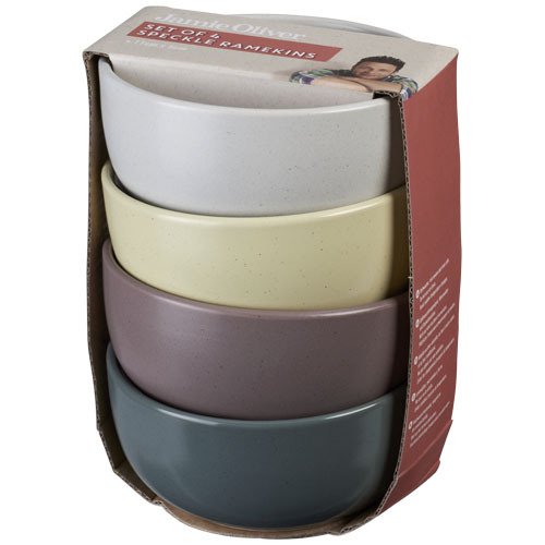 Diese vierteiligen, farbigen Jamie Oliver Steingut-Auflaufformen mit einer Höhe von 5 cm und einem Durchmesser von 11 cm sind perfekt für das Servieren von Fingerfood geeignet. Spülmaschinen- und ofengeeignet bis 200 °C. Stoneware.