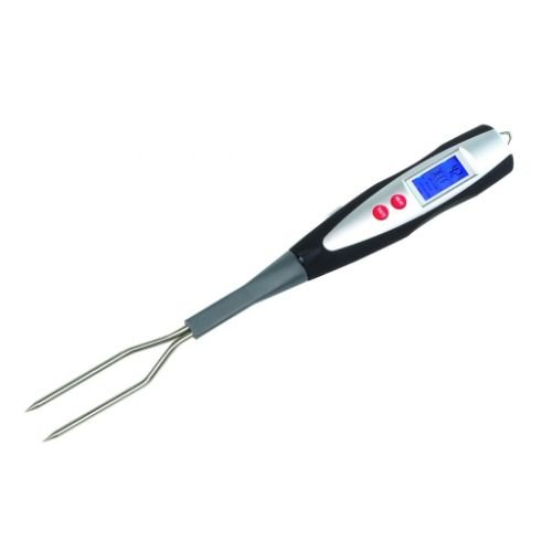 BBQ-Gabel MAITRE mit Thermometer: bestehend aus Kunststoffgriff, 2 roten Kontrollknöpfen, LCD-Anzeige (für °C und °F) und Aufhängeöse – perfekt für Grillfans.