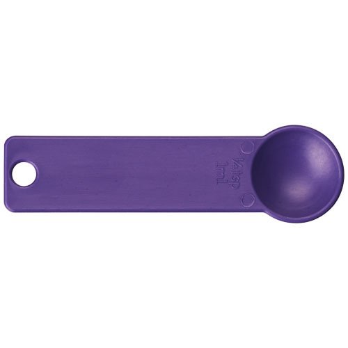 Ein Satz Messlöffel in vier Größen, alle an einem Ring befestigt. Die enthaltenen Maße sind 1/4 TL, 1/2 TL, 1 TL und 1 EL. In verschiedenen Farben erhältlich. PP-Kunststoff.